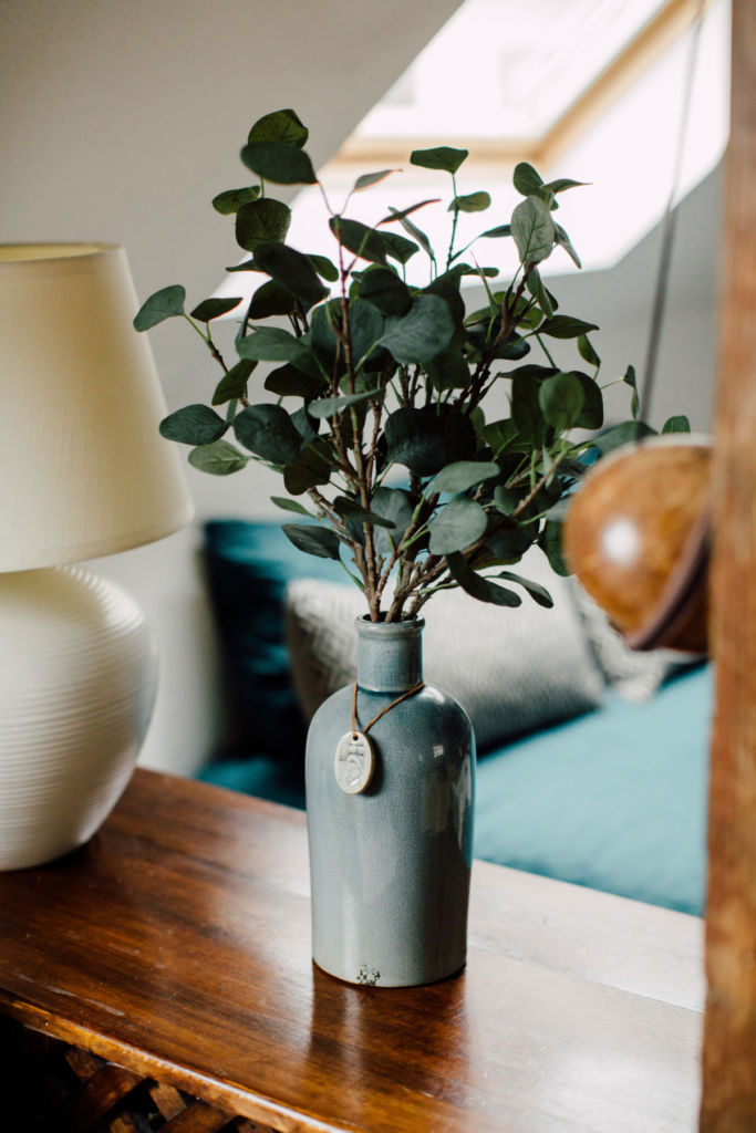 Comme dans beaucoup de maisons traditionnelles alsaciennes, la hauteur sous plafond du 1er étage de la grange est peu importante (à peine plus de 2 mètres). Pour pallier au manque de lumière, la décoration s'inspire du style scandinave avec des couleurs douces et légèrement désaturées, du bois clair et des matières naturelles.